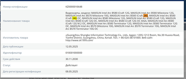 Na parte das gráficas Intel, foi registado dois modelos Icraft e Icraft OC com 24GB.