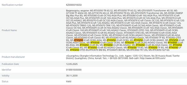 Já na parte da Nvidia, foi registado vários modelos de RTX 5050 8GB.