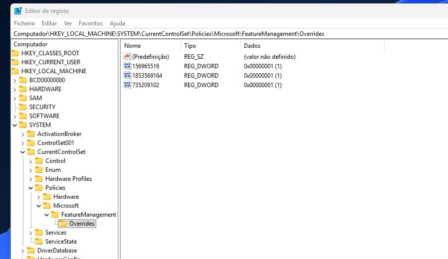 Enquanto a Microsoft não lança um update para habilitar isso nativamente no Windows 11, é possível no 25H2 através do registo adicionar as linhas de registo necessárias.