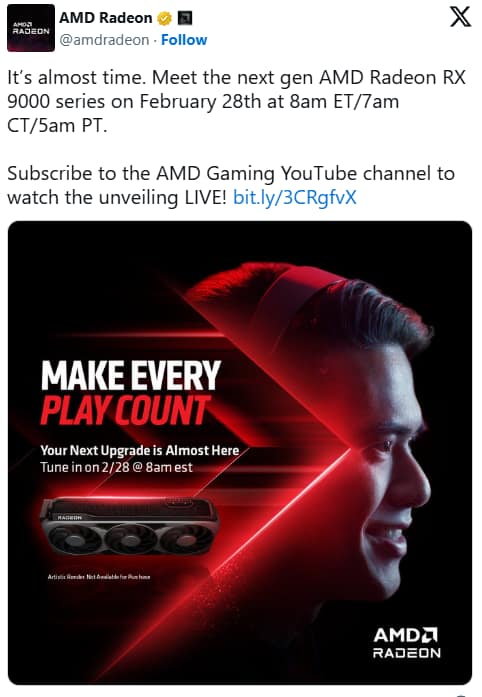Dia 28 será o evento oficial das RX 9070 e já foi confirmado que dia 6 de Março Será o seu lançamento.