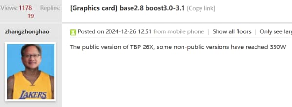 Segundo rumores no forum da Chiphell, as próximas gráficas AMD RX9070XT vão ter uma consumo TBP de 260w em modelos “reference”, podendo em versões OC e de varias marcas chegar aos 330w TBP