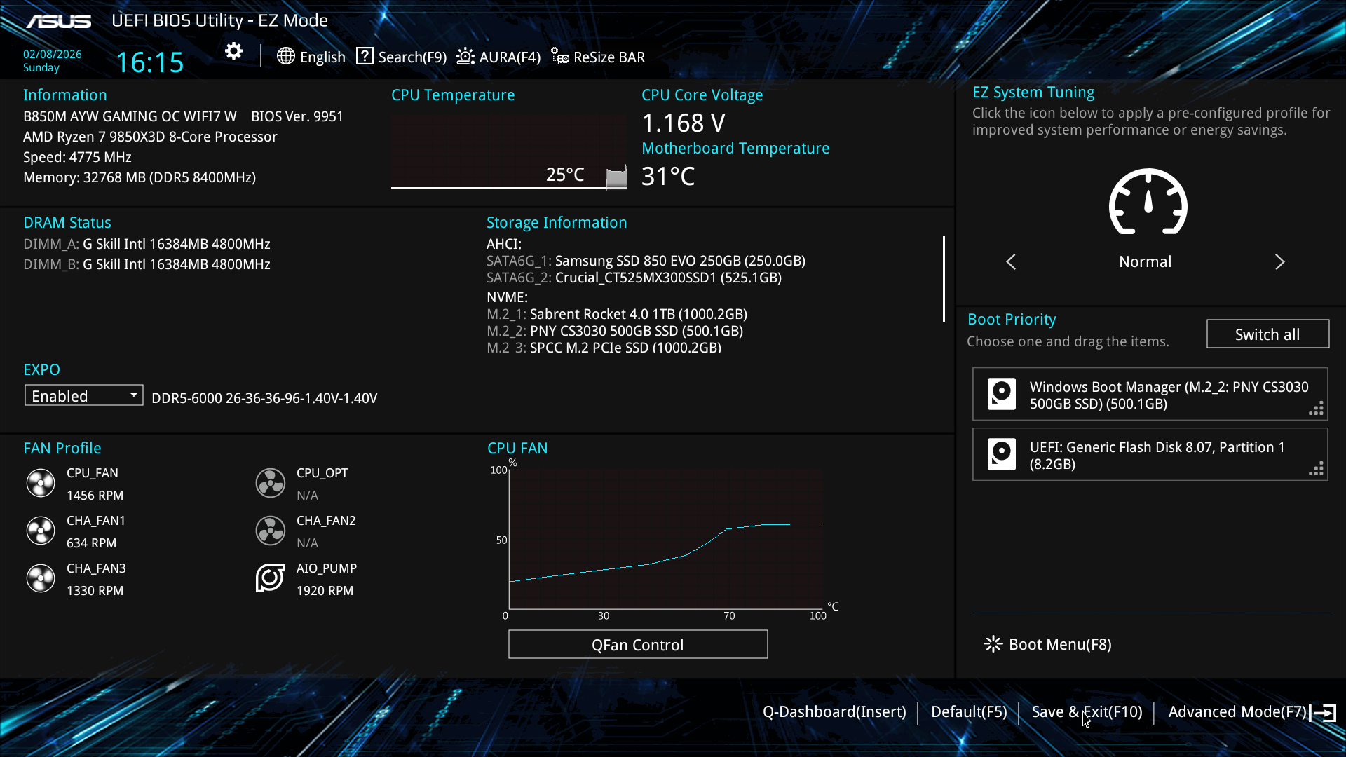 Quanto ao resto da otimização é exatamente igual ao 9800x3D, tentar meter o Infinity a 2200Mhz se o CPU aguentar, caso contrario achar o máximo estável.