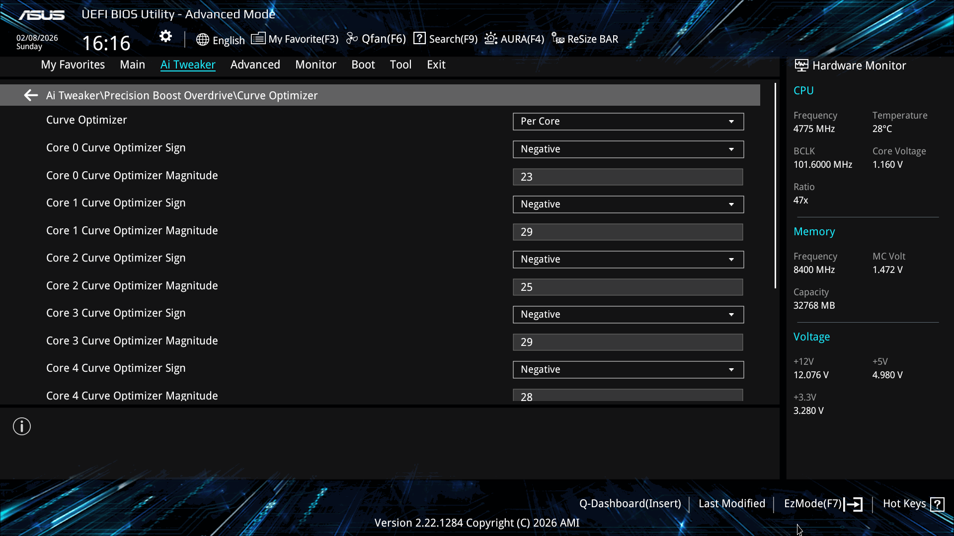 Dessa forma, podem perder algumas horas a testar com o CoreCycler por exemplo e encontrar o valor máximo para cada core e ai usarem o modo Per core e definir manualmente cada Core.