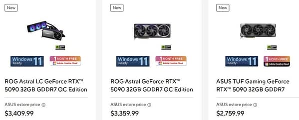 Segundo a própria loja ASUS nos EUA, o modelo ROG RTX 5090 Astral OC subiu mais 280$, passando para uma valor de 3360$, o que representa um aumento de 560$ face ao preço que foi lançada.