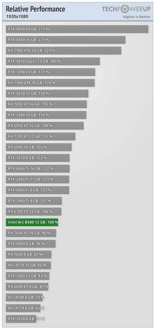 Em regra geral a Arc B580 supera a concorrente  AMD RX 7600 e também a Nvidia RTX 4060 8GB.