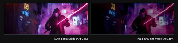 Outra novidade é o EOTF Boost HDR que vai dar um brilho mais elevado, comparado ao Peak 1000 nits do painel OLED.