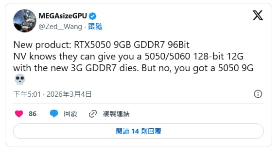 Mas embora este modelo até tenha mais 1GB de memoria uma vez que a versão atual tem 8GB em GDDR6, esta nova gráfica com 9GB em GDDR7 virá com apenas 96bit.