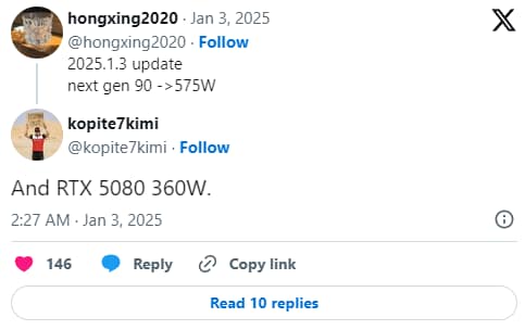Também a RTX5080 levou uma redução dos rumores iniciais de 400W , para um TDP oficial de 360W.