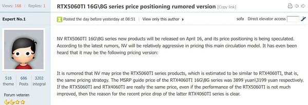 Os rumores mais recentes, sugerem que a Nvidia irá lançar as RTX 5060Ti a preços idênticos ás RTX 4060Ti quando saíram.