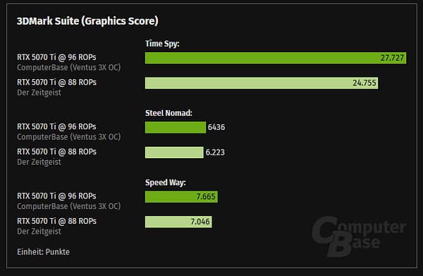 No fórum da ComputerBase.de, apareceu então esta MSI pelo utilizador “Der Zeitgeist” , que de seguida realizou uns benchmarks a comparar os seus resultados com uma RTX5070Ti sem defeito.